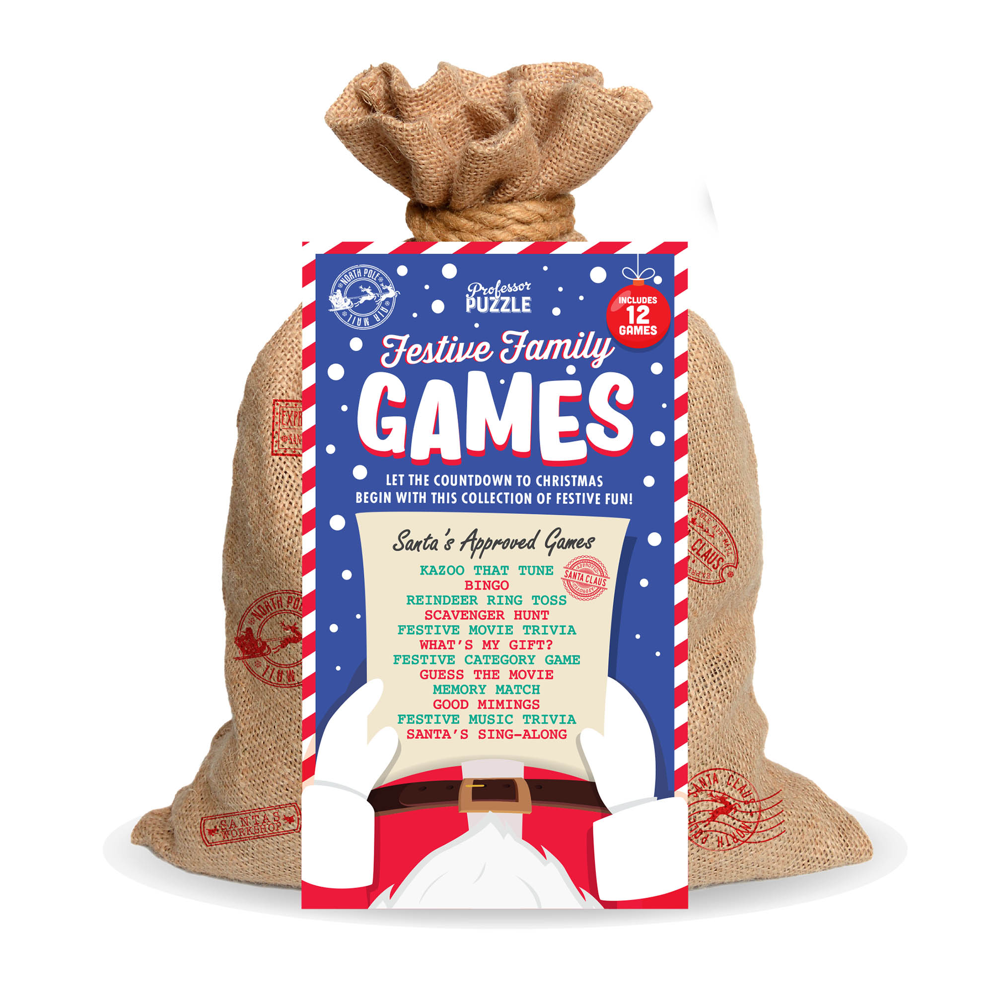 Pregătește-te pentru o noapte nu tocmai liniștită cu acest sac de jocuri vesel, plin de distracție festivă! Incluzând douăsprezece activități pentru familie, de la aruncarea inelelor, la bingo, la trivia și multe altele, există câte ceva în interior pentru a-i face pe toți să simtă bucuria Crăciunului. Prezentat într-un sac robust de jucărie, acest set plin de distracție este perfect pentru a te juca acasă sau pentru a-l lua în deplasare pentru a răspândi veselia festivă!