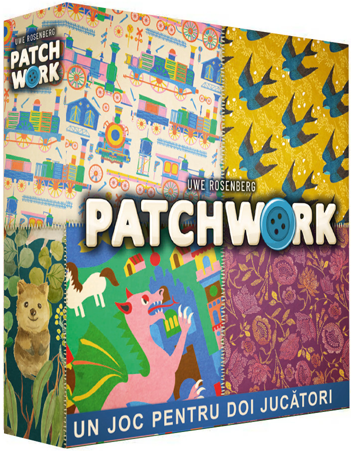 Patchwork este un joc de societate captivant si distractiv pentru 2 jucatori, cu un concept unic in care jucatorii isi construiesc propriile lor modele, in incercarea de a crea cele mai frumoase si complete design-uri pe tabla lor de joc. Fiecare jucator primeste o tabla personala de joc, care are forma unui pat de cusut, si cateva piese de panza de diferite forme si culori. Obiectivul este sa plasezi piesele in mod strategic pe tabla ta, incercand sa acoperi cat mai mult teren si sa obtii cat mai multe puncte. Patchwork este un joc plin de decizii dificile si planificare strategica. Fiecare runda este o provocare in sine, iar la final, jucatorul cu cel mai bine organizata si frumoasa panza va fi declarat castigator. Indiferent daca esti un fan al jocurilor de societate sau doar vrei sa incerci ceva nou si distractiv, Patchwork este o alegere excelenta pentru a petrece timpul alaturi de prieteni si familie.