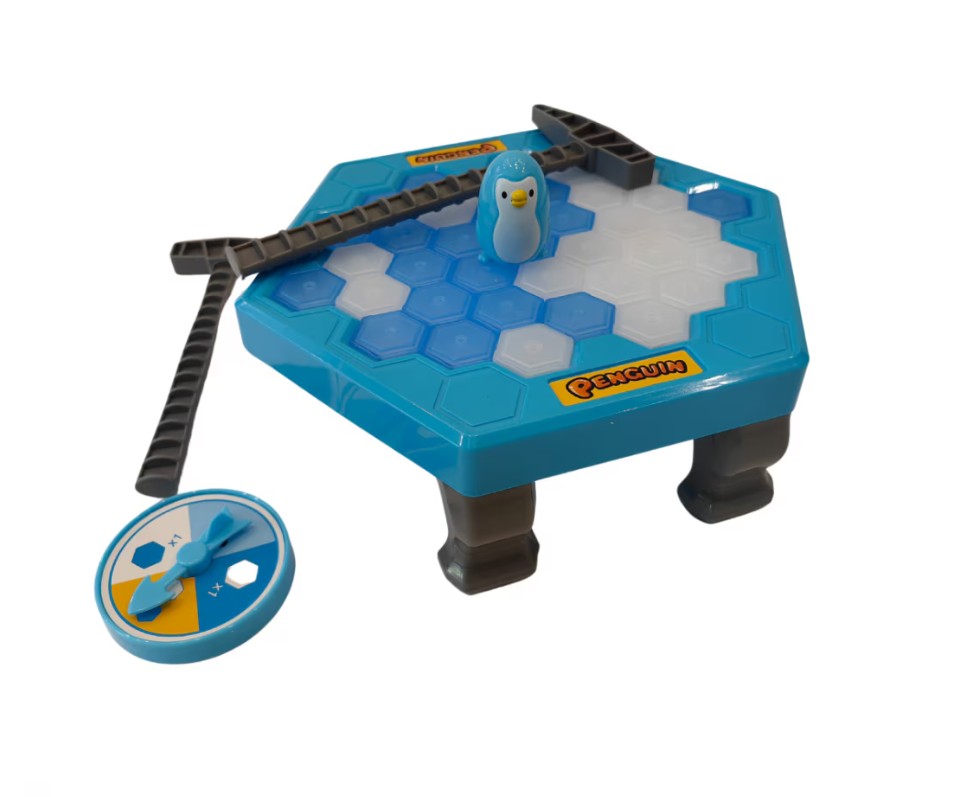 Testeaza-ti abiltatile de indemanare si imprieteneste-te cu pinguinul in aceasta aventura pe gheata plina de surprize! Caracteristici: plaseaza pinguinul in centrul ghetarului si asaza bucatile de gheata in jurul sau, folosind roata pentru a determina ordinea in care acestea trebuie sparte jucatorul trebuie sa incerce sa sparga bucata de gheata corespunzatoare utilizand o miscare controlata, fara sa provoace caderea pinguinului cel care face ca pinguinul sa cadă de pe bloc va pierde jocul este perfect pentru dezvoltarea indemanarii, a coordonarii ochi-mana si a imaginatiei joc pentru 2 jucatori Setul include: 1 suport pentru blocurile de gheata 19 blocuri de gheata albe si albastre 1 disc rotativ 1 pinguin 4 piese pentru suport 2 ciocane din plastic Dimensiune ambalaj: 25.5 x 25.5 x 6 cm Varsta recomandata: 3 ani+ Atentie! Contraindicat copiilor mai mici de 3 ani. Jucaria/produsul poate contine piese mici care se pot inghiti sau inhala existand pericolul de sufocare sau nu este potrivita copiilor mai mici de 3 ani. Nu lasati ambalajele jucariilor/produselor la indemana copiilor. Indepartati orice ambalaj al jucariei/produsului inainte de a da jucaria/produsul copilului. Va rugam sa supravegheati copilul in timp ce se joaca/foloseste acest produs. Pastrati instructiunile si etichetele pentru referinte viitoare. Pastrati jucaria/produsul departe de foc, feriti jucaria/produsul de temperaturi ridicate si umiditate.