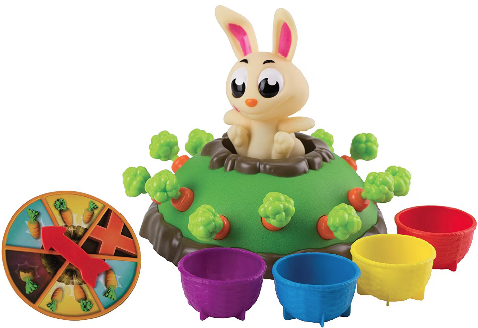 Invarte spinnerul si afla cati morcovi trebuie sa scoti. Pune morcovii pe masa, in fata lui Rontaila, dar ai grija: daca sare, trebuie sa fii rapid! Cine il prinde, castiga jocul!