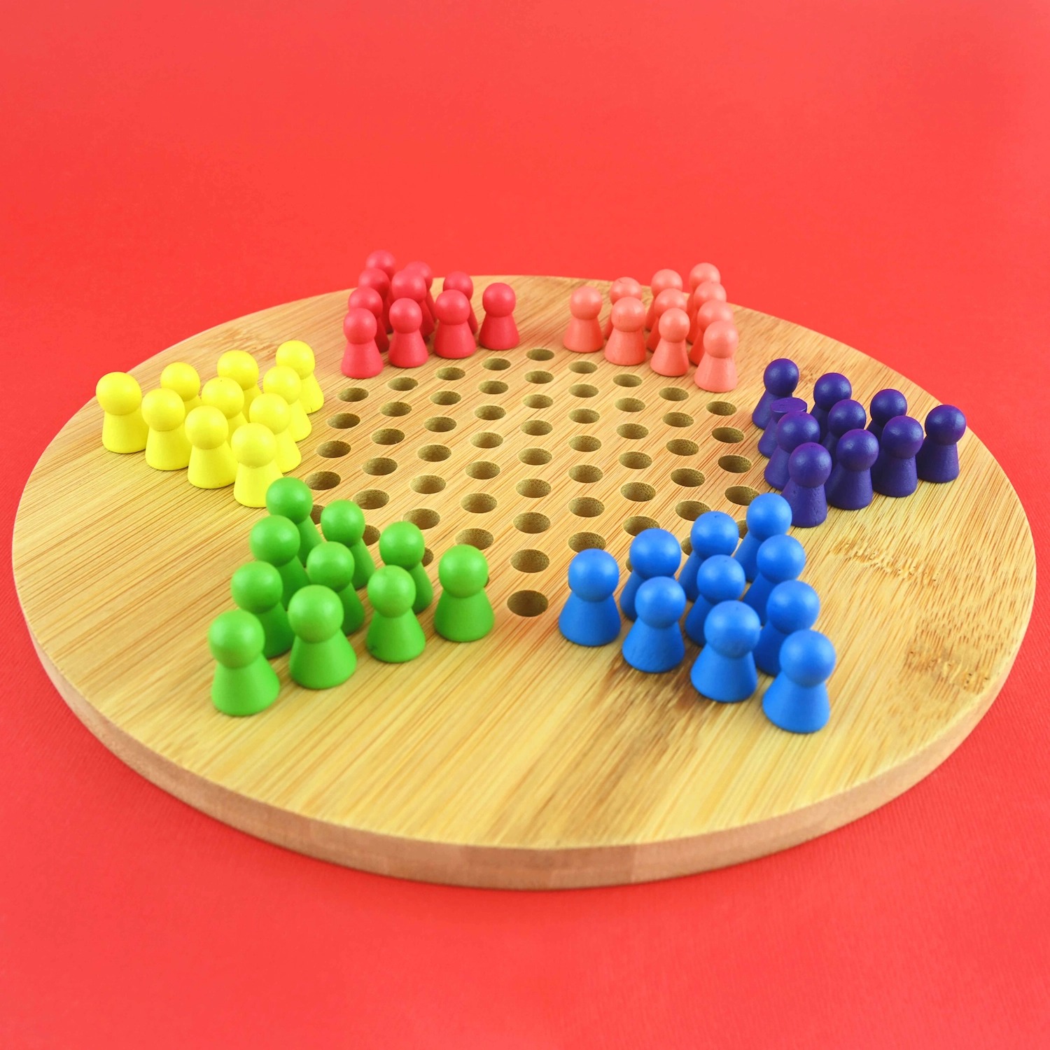 Tabla de joc și pionii sunt fabricați din lemn de bambus.