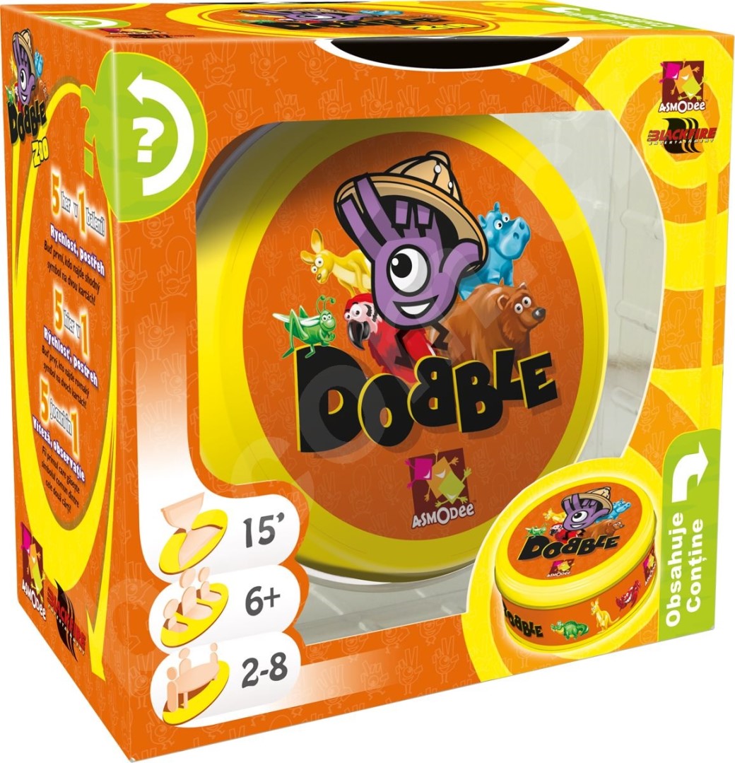 In Dobble, jucatorii trebuie sa gaseasca o imagine comuna intre cartea de pe masa si cea pe care o tin in mana. Aceasta varianta este cu simboluri ale animalelor din Grădina Zoologica.