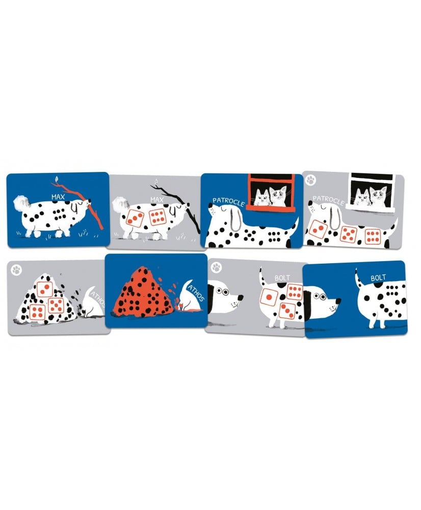 • Pe randul tau, arunci zarurile si le plasezi pe cartile cu catelusi – dar daca nu se potrivesc, trebuie sa le „ingropi” in curte.