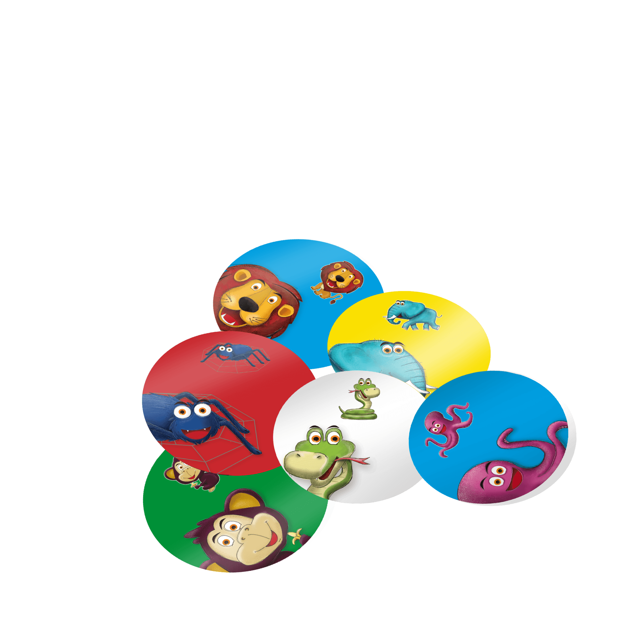 Continut: 36 de cartonase din plastic (6 animale diferite, fiecare in 6 culori diferite), 2 zaruri si un set de instructiuni in limba romana.