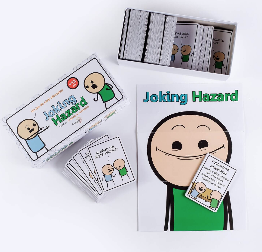 Joking Hazard (RO) este destinat adultilor cu varsta de +18 ani, ce poseda o minte deschisa si dorinta de a se distra. Trei sau mai multi jucatori vor construi benzi desenate hilare si neconventionale despre sex, violenta si chiar prietenie.