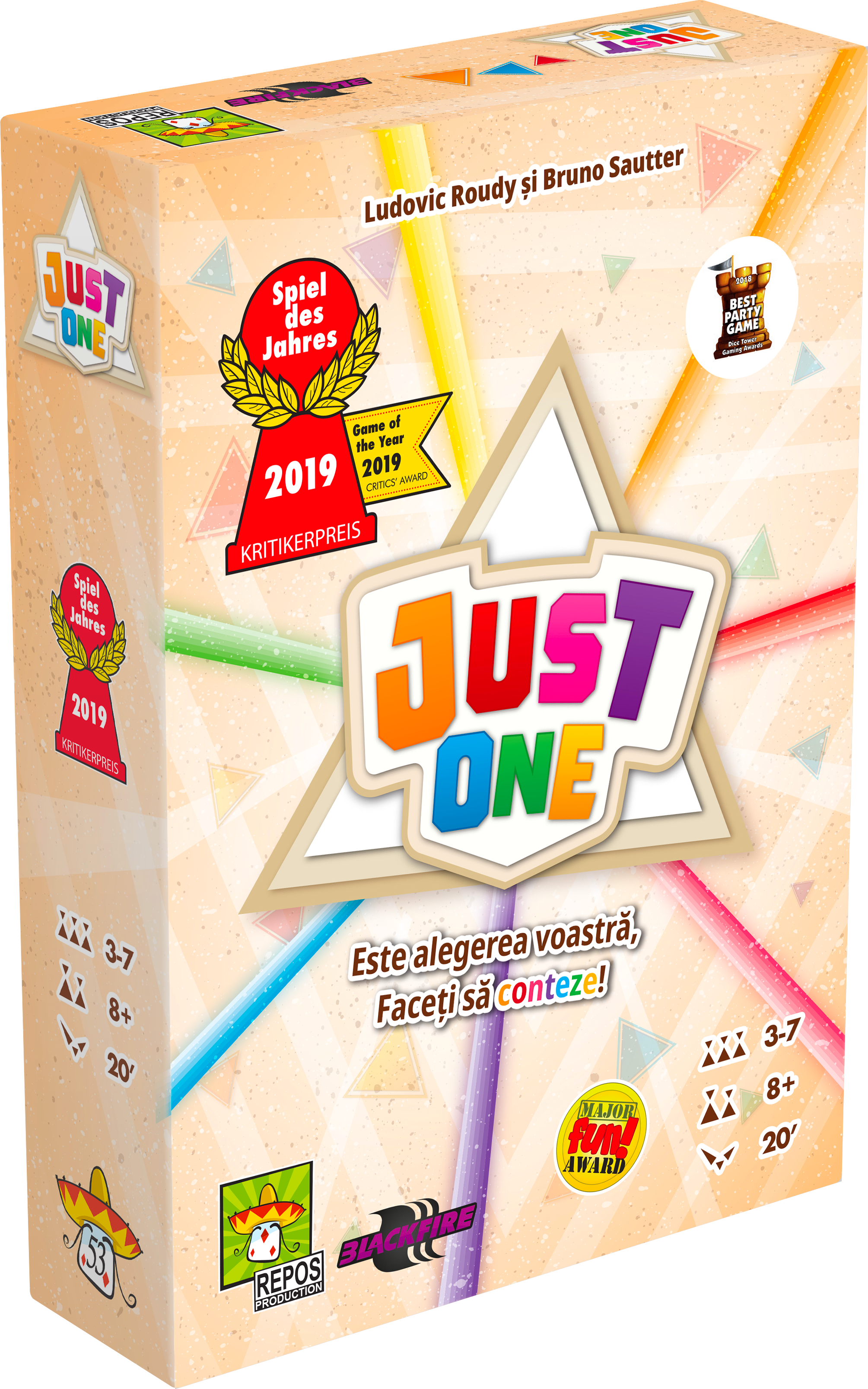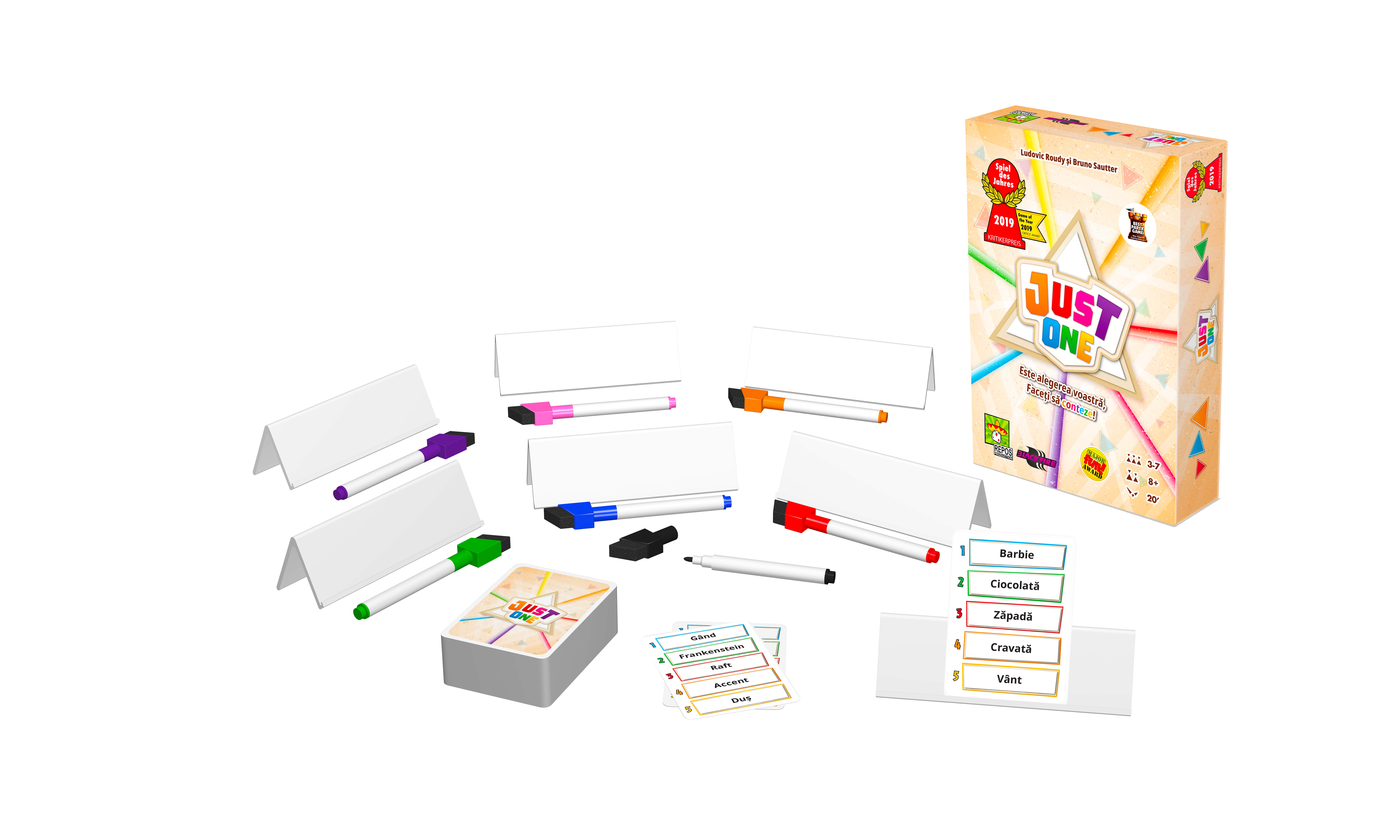 Just One este un joc de petrecere cooperativ care a câștigat Spiel des Jahres în 2019! Jucați-vă împreună pentru a descoperi cât mai multe cuvinte misterioase. Găsiți cel mai bun indiciu pentru a vă ajuta coechipierul. Fii unic, deoarece toate indiciile identice vor fi anulate!