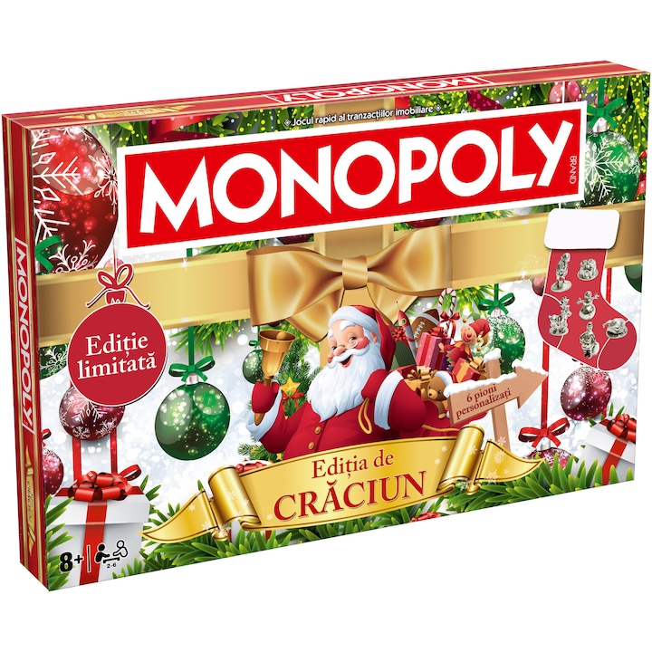 Monopoly - Craciun (RO) aduce atmosfera sarbatorilor de iarna in centrul jocului clasic de strategie si tranzactii. Aceasta editie speciala imbina placerea jocului original cu farmecul Craciunului romanesc si international, oferind o experienta ludica perfecta pentru intreaga familie.