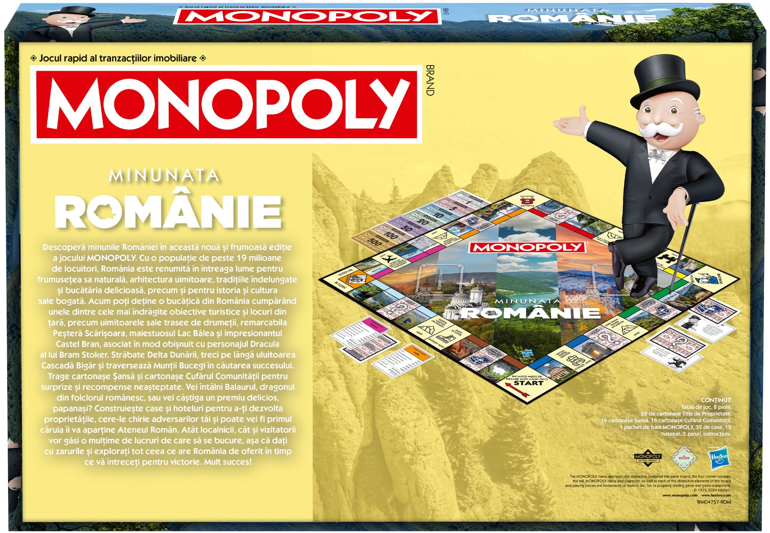 Acest joc clasic de societate este personalizat pentru a include cele mai iconice obiective turistice și obiceiuri locale ale țării noastre. Monopoly România îți oferă oportunitatea de a călători virtual prin cele mai frumoase locații din țară, achiziționând și dezvoltând proprietăți precum Castelul Bran, Ateneul Român, Delta Dunării și multe altele.
