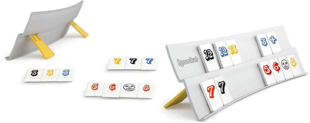 Continut: 106 placi (8 seturi de piese 1-13 in patru culori si 2 piese Joker). Scopul jocului: Sa fii primul jucator care joaca toate piesele de pe tabla combinandu-le in seturi („formatii si/sau „suite). Fiecare piesa are valoare nominala (numarul afisat pe piesa). Pentru a realiza o combinatie initiala, fiecare jucator trebuie sa puna piesele pe masa in unul sau mai multe seturi care insumeaza cel putin 30 de puncte. Aceste puncte trebuie sa provina din piesele de pe tabla fiecarui jucator pentru combinatia lor initiala, jucatorii nu pot folosi piesele deja jucate pe masa. Un joker folosit in combinatia initiala marcheaza valoarea piesei pe care o reprezinta. Cand jucatorii nu pot juca nicio piesa de pe tablele lor sau aleg intentionat sa nu o faca, ei trebuie sa ia o piesa din gramada. Dupa ce trage, randul sau s-a incheiat. Jocul trece la jucatorul din stanga (in sensul acelor de ceasornic). Dupa ce un jucator si-a facut combinatia initiala, acel jucator poate construi alte formatii pe masa cu piesele de pe tabla sa. In orice tura in care un jucator nu poate adauga alta formatie sau suita de pe tabla sa, acel jucator va trage o piesa din gramada si randul sau va trece. Jucatorii nu pot etala o piesa pe care tocmai au tras-o trebuie sa astepte pana urmatoarea data cand le vine randul pentru a juca aceasta piesa. Jocul continua pana cand un jucator isi goleste tabla si striga „Rummikub! Astfel se incheie jocul si jucatorii isi numara punctele (vezi Scor). Daca nu mai sunt piese in gramada si niciun jucator nu si-a golit tabla, jocul continua pana cand piesele nu mai pot fi jucate. Astfel se incheie jocul.