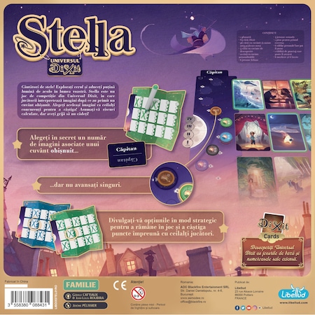 Stella este cel mai nou joc din universul Dixit si se poate juca in 3-6 jucatori cu varste incepand de la 8 ani.
