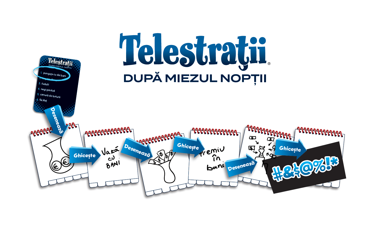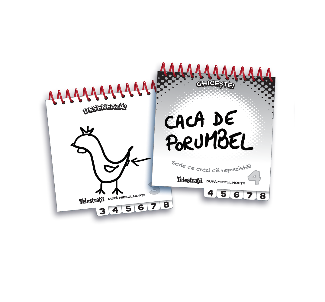 Jucatorul care a primit carnetelul trebuie sa ghiceasca ce ati desenat si sa scrie pe carnetel ce a inteles, apoi paseaza celui din stanga sa. Jocul continua astfel pana cand toti jucatorii si-au primit carnetelul inapoi.