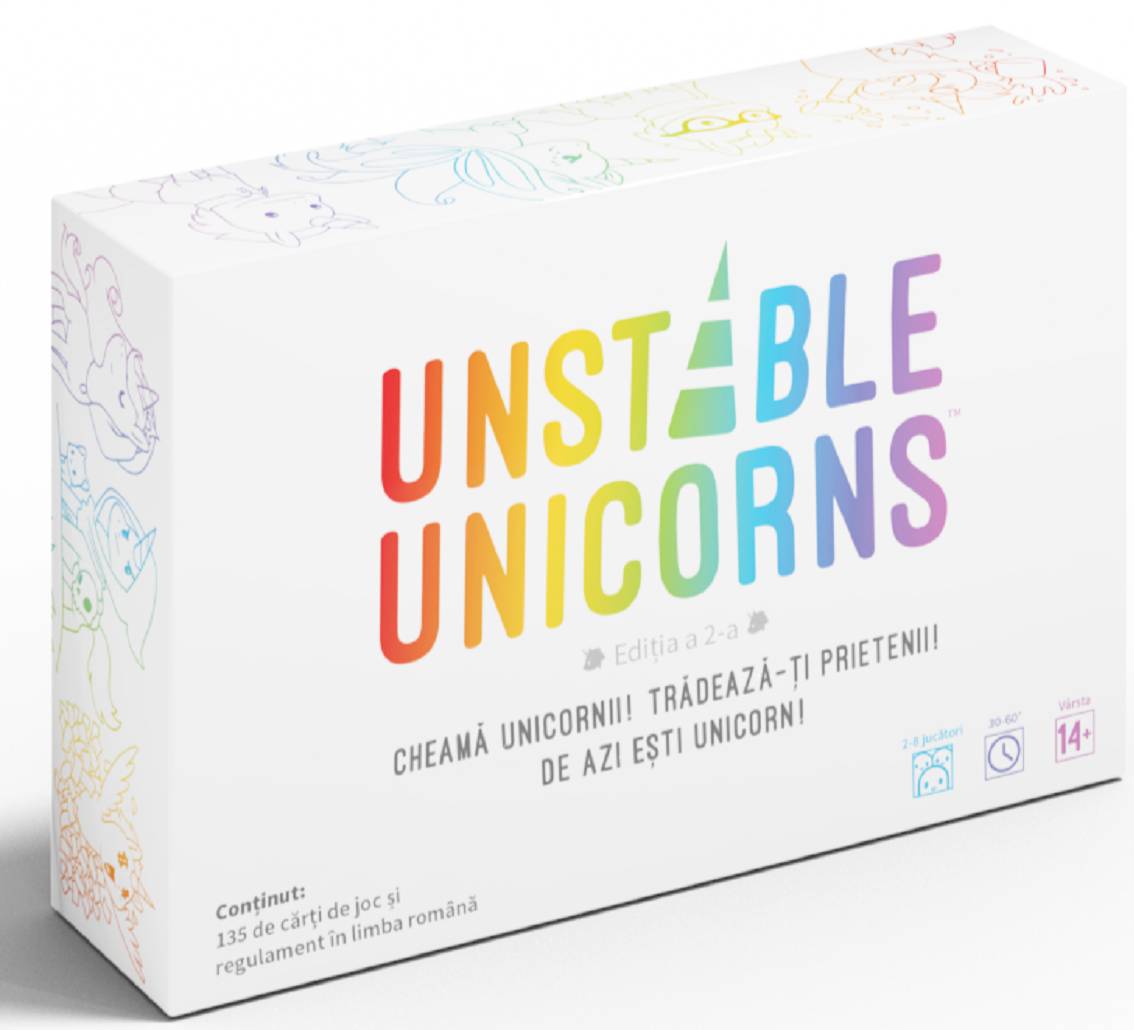Unstable Unicorns este un joc strategic de carti in care sunt imbinate doua lucruri: Unicorni si Distrugere!