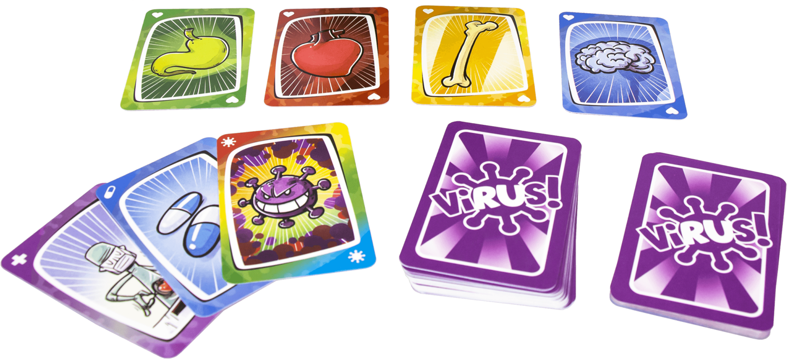 VIRUS! este un joc de cărți, pentru 2 - 6 persoane, în care veți alcătui un corp uman în timp ce încercați să vă împiedicați adversarii să vă infecteze, să vă distrugă sau să vă fure organele. Fiți primul care va crea un corp complet!