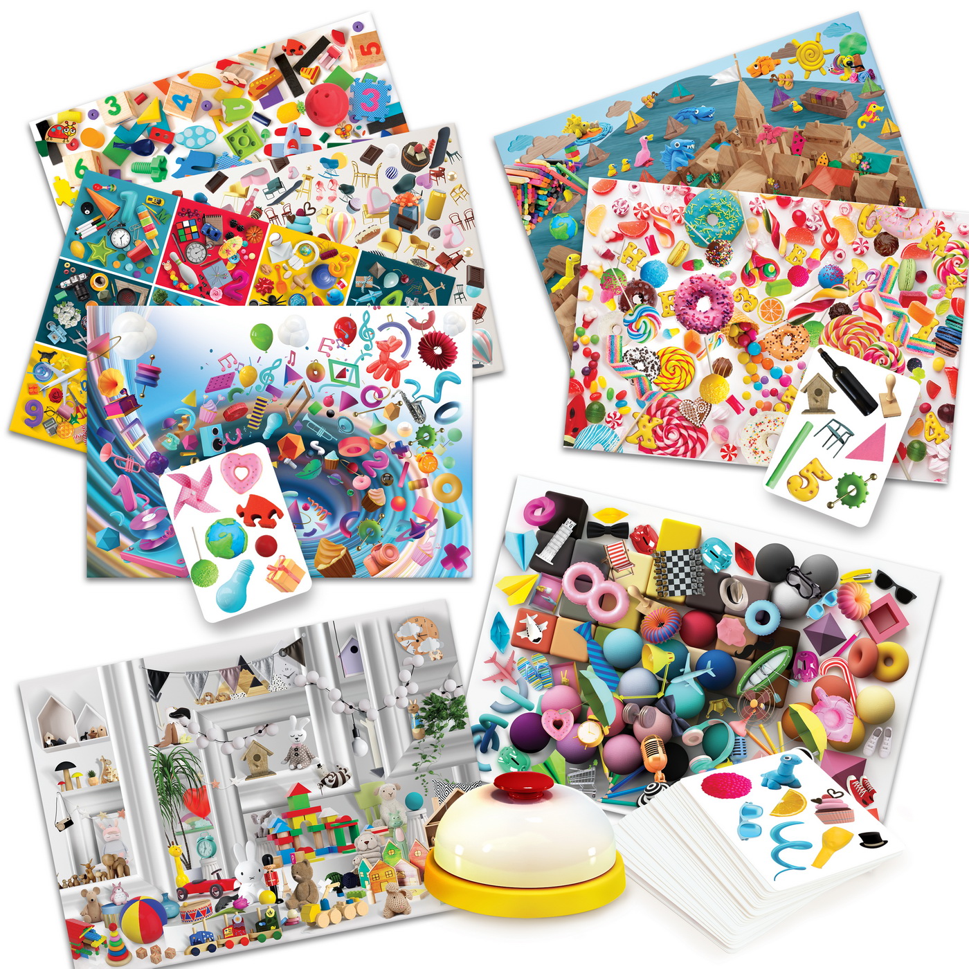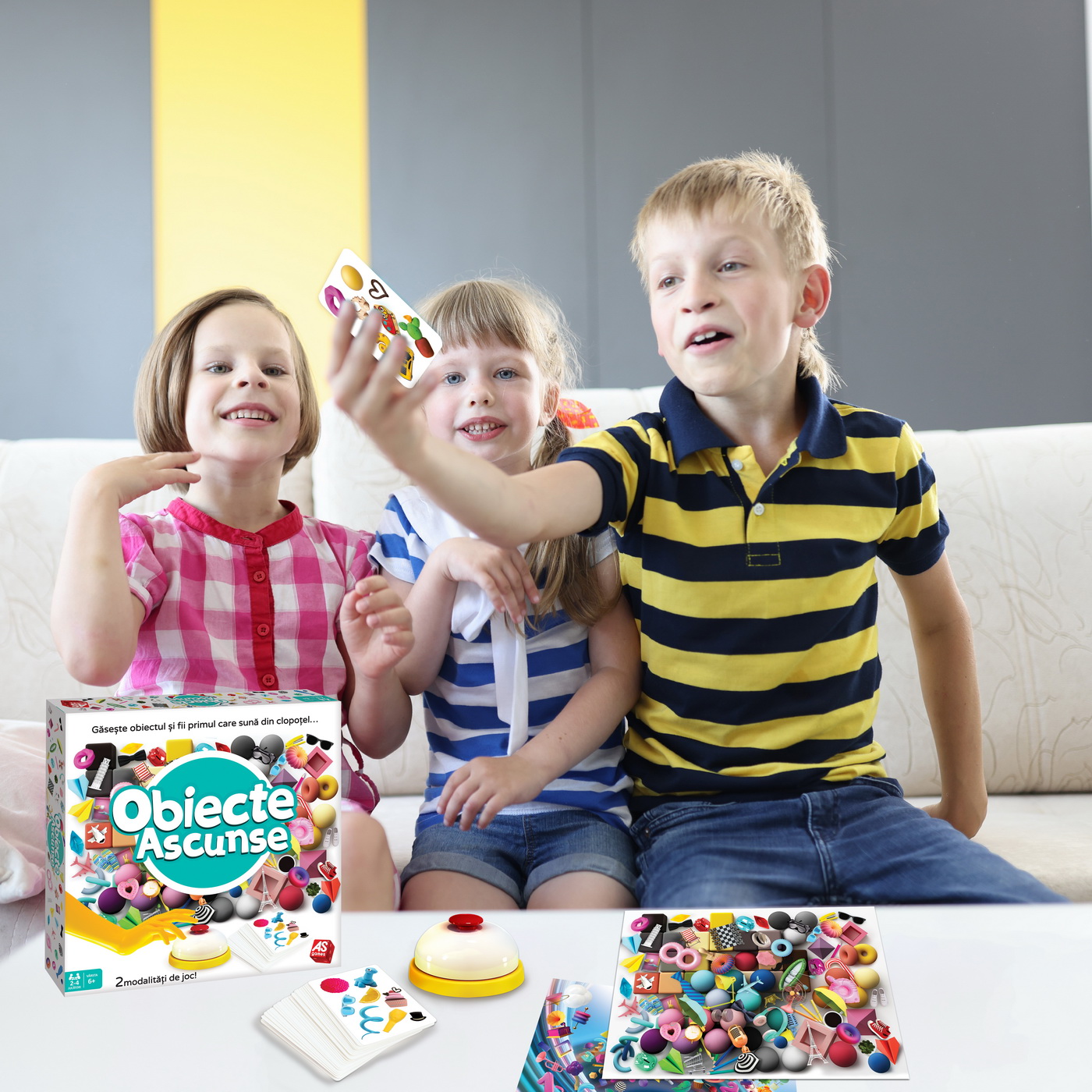 Cel mai distractiv si antrenant joc de obseratie! Alege o plansa de joc, trage o carte si gaseste rapid obiectul ascuns. Fii primul care suna din clopotel si castiga! Jocul contine 4 planse de joc, 30 de cartonase cu obiecte, 1 clopotel si 1 manual de instructiuni. Valori dezvoltate perceptia vizuala, coordonarea mana-ochi, abilitati sociale. Jucatori 2-4. Varsta 6+. Nu necesita baterii.
