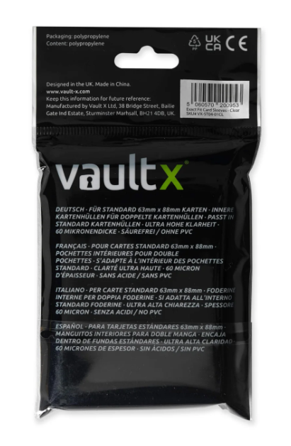 - PROTECT - Vault X exact fits are made from 60 micron thick polypropylene. These card sleeves provide the perfect base for double sleeving or great single sleeve protection for your binder collection.