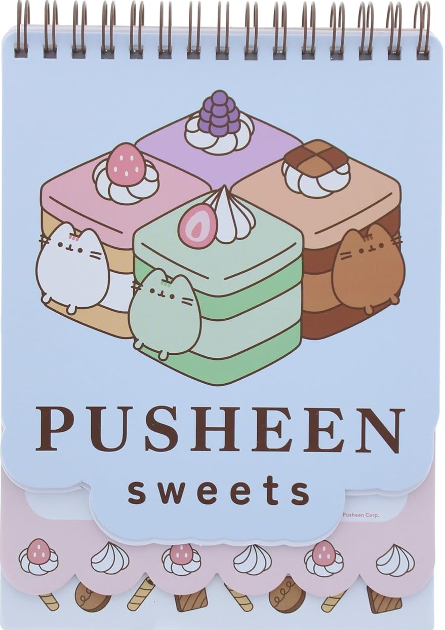 Creat de Blueprint Collections, acest blocnotes adorabil îl prezintă pe simpaticul personaj Pusheen, înconjurat de dulciuri.