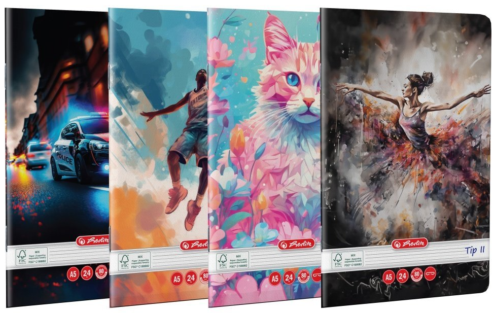 Caiet A5, 24 file, Tip II, motiv Dinamic Premium - hartie 80 g FSC mix