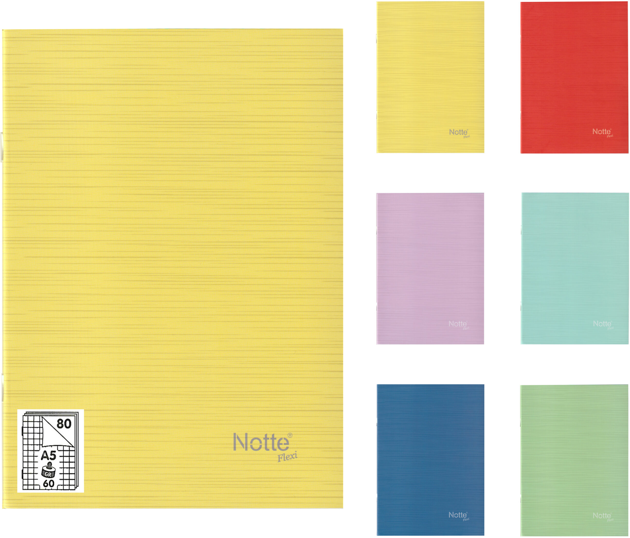 Caietul este capsat și conține 80 de file dintr-o hârtie de înaltă calitate de 60 g/mp.