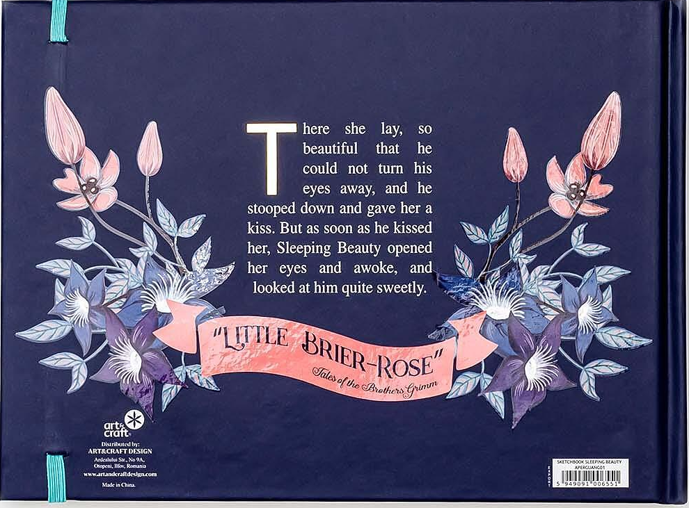 Caietul „Frumoasa din Padurea Adormita” poate fi tovarasul tau de drum de incredere ce poate deveni un caiet de schite „altfel”, cu o hartie fina de culoare ivory deschis. Aceasta suprafata permite desenului tau sa aibe un aspect vintage sis a scoata in evidenta schita in creion sau in carbune. Copertile groase ajuta la stabilitate, astfel permitandu-ti sa schitezi oriunde, in masina, in parc sau chiar pe iarba, in fata scolii. Sistemul de inchidere cu elastic pe colt previne deschiderea accidentala si astfel iti va pastra toate creatiile in siguranta.