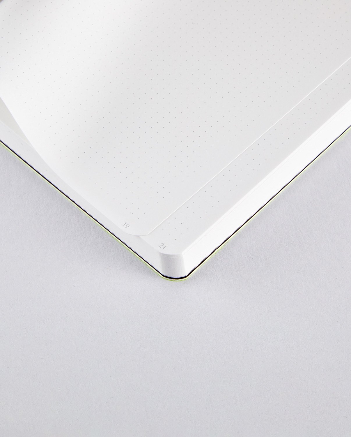 Carnetele NUUNA nu sunt doar potrivite pentru ideile tale, ci conțin ele însele o grămadă de idei. Sunt fabricate din hârtie suedeză premium, 120g Munken certificată FSC, paginile sunt cusute pentru a putea sta deschise complet fără a se desprinde din file, iar coperțile sunt realizate din diferite materiale de calitate din Germania, Suedia și Italia. Motivele de pe coperți sunt aplicate prin serigrafie, această modalitate de imprimare face culorile să fie mai intense, iar designul 360° se continuă și pe marginea exterioară a filelor. Carnetele NUUNA sunt mici obiecte de design, piese de colecție și începutul sfârșitului carnetelor plictisitoare.