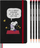 Set carnet + 12 creioane si ascutitoare Peanuts x Moleskine - Large, Ruled, Hardcover (Black & Gift Box)