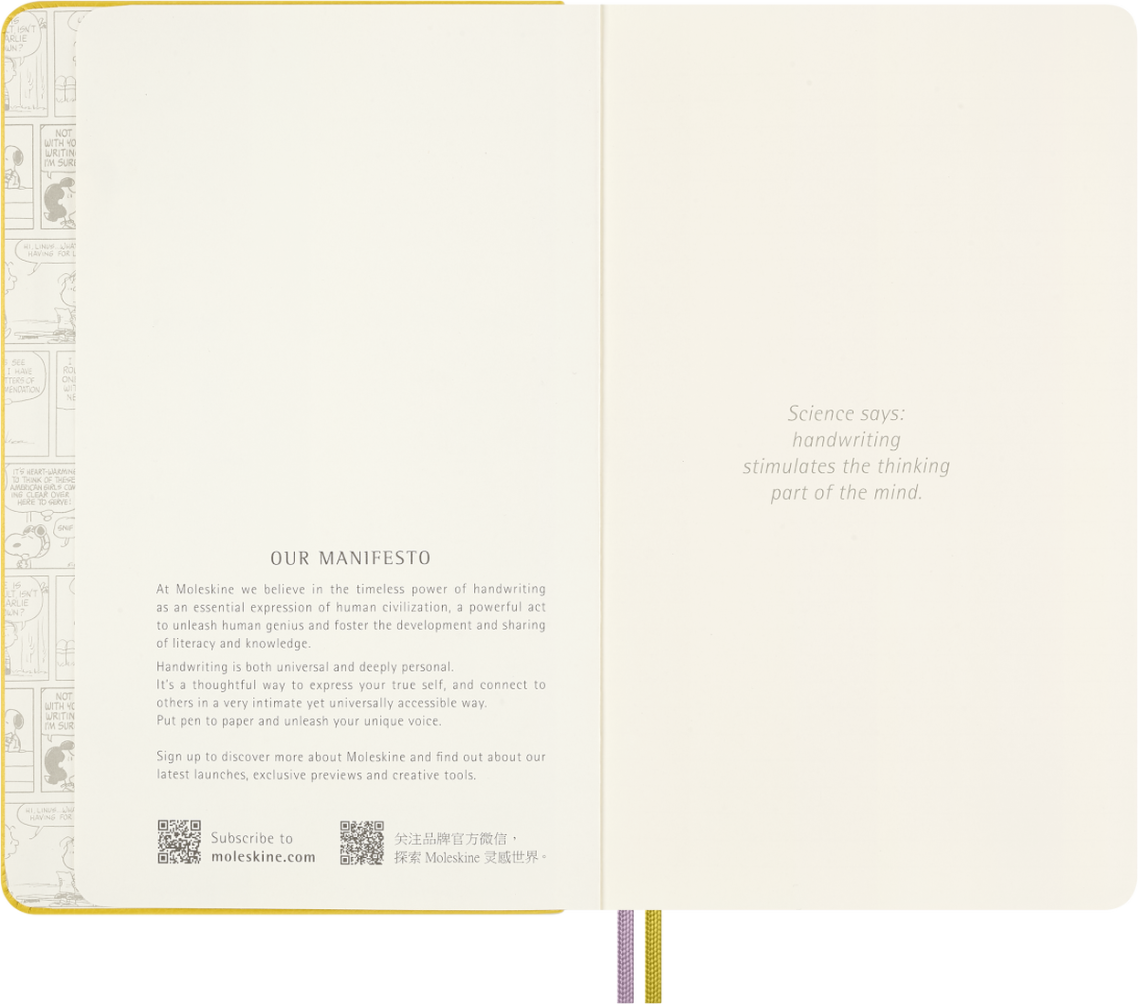 Capture your thoughts, ideas, and doodles with this Peanuts x Moleskine Notebook—a tribute to life’s simple truths and the power of handwriting. This large, ruled notebook features iconic Peanuts illustrations and a quote that celebrates the joy of note-taking and self-expression.