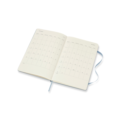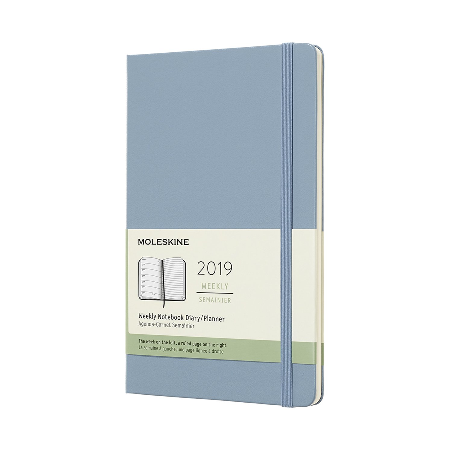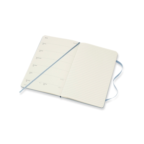 Formatted to show the week’s appointments on the left with a full ruled page for notes, to-do lists and ideas on the right, the Moleskine Weekly Notebook accompanies you and your plans all year long. It is a handy and versatile diary/planner that allows you to see the whole week in one place, while also incorporating the freedom of a notebook. The cool Cinder Blue cover has a color-coordinated elastic band to secure your plans and bookmark ribbon to keep you on track all year long.