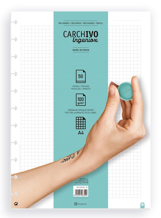 Rezerva 50 coli, hartie de inalta calitate 100g FSC pentru Ingeniox Notebook.Liniatura matematica, dimensiune A4.