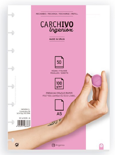 Rezerva 50 coli, hartie de inalta calitate 100g FSC pentru Ingeniox Notebook.Liniatura velina, dimensiune A5