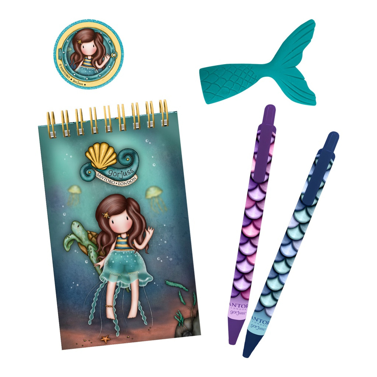 Descoperiți magia oceanului cu setul de papetărie Gorjuss Lost at Sea! Acest set uimitor combină alura mării cu instrumente esențiale de scris, oferindu-vă o experiență creativă unică. Radiera în formă de sirenă și banda cu sclipici strălucitoare adaugă o notă de magie fiecărui proiect, în timp ce husa elegantă din PVC cu decor holografic păstrează totul organizat în stil.