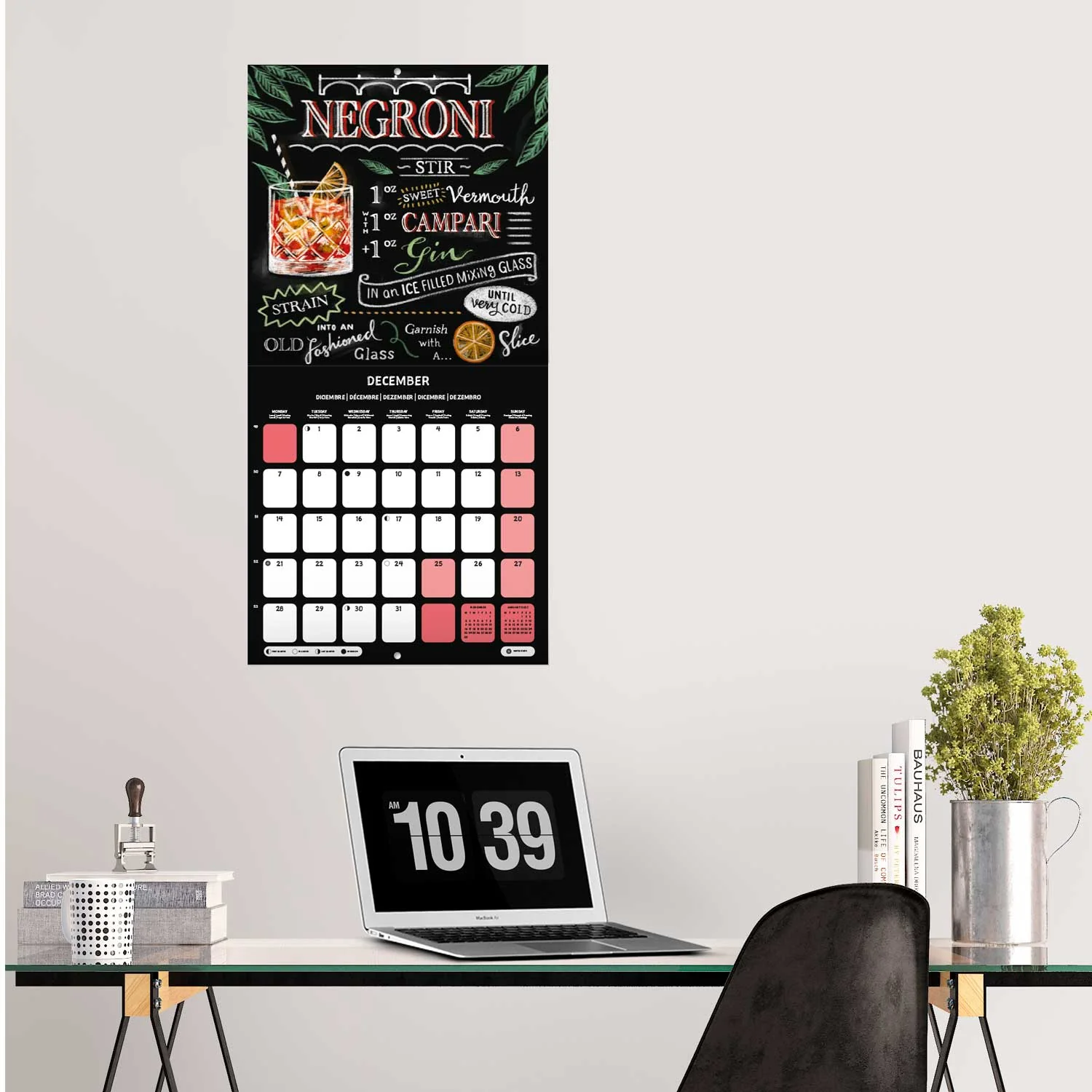 Acest calendar festiv de perete îți oferă în fiecare lună sfaturi delicioase despre cocktailuri, inclusiv fotografii colorate și o notă de glamour.
