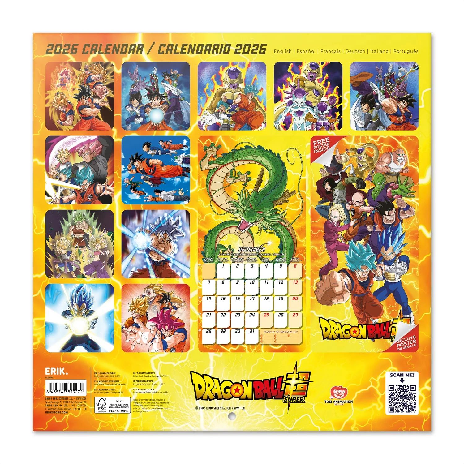 Începe anul în stil Super Saiyan cu Calendarul Dragon Ball Z 2026 - un calendar de perete puternic, plin de ilustrații epice cu Goku, Vegeta, Gohan și alții.