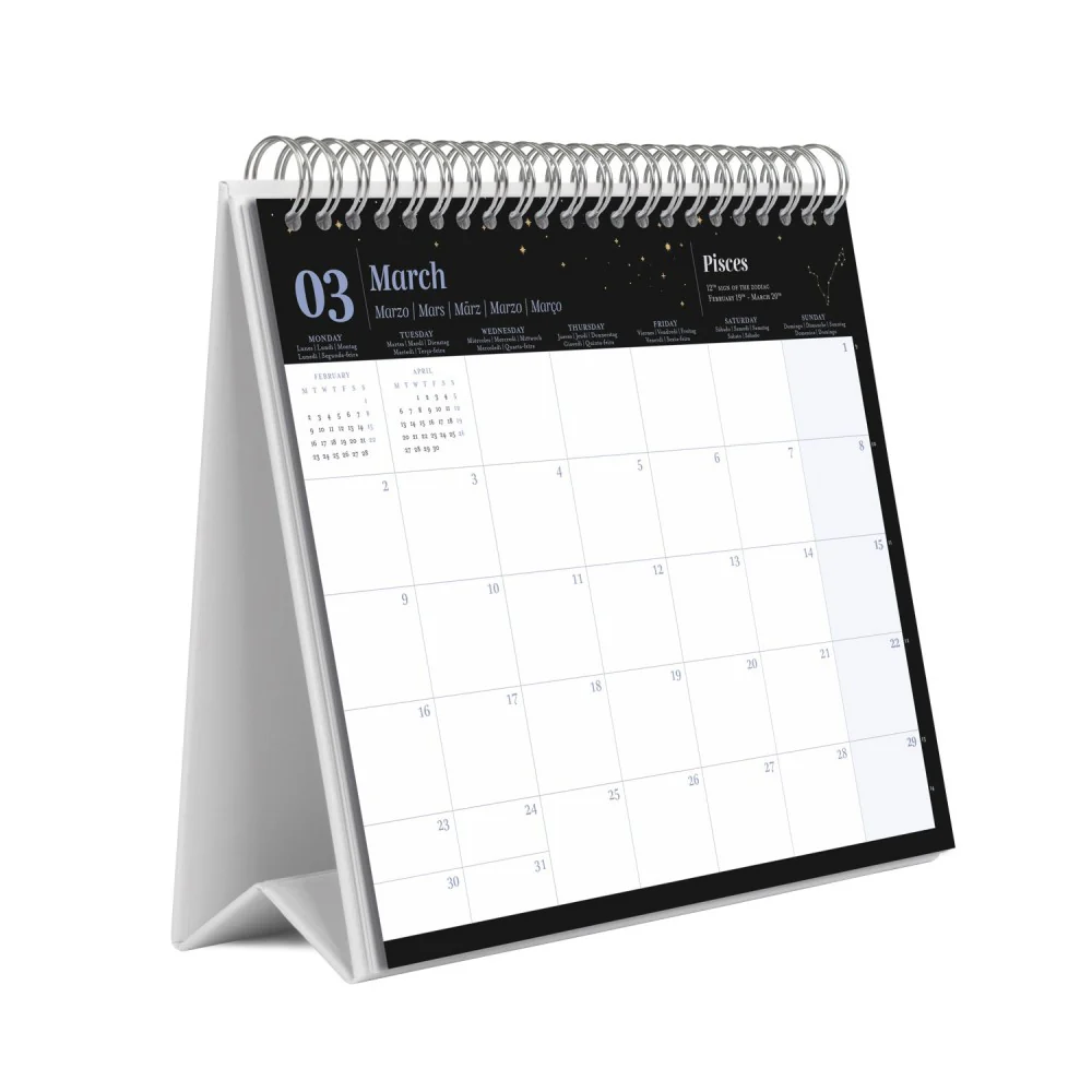 Acest calendar de birou cu fir metalic este o combinație încântătoare de astrologie, design minimalist și funcționalitate practică.