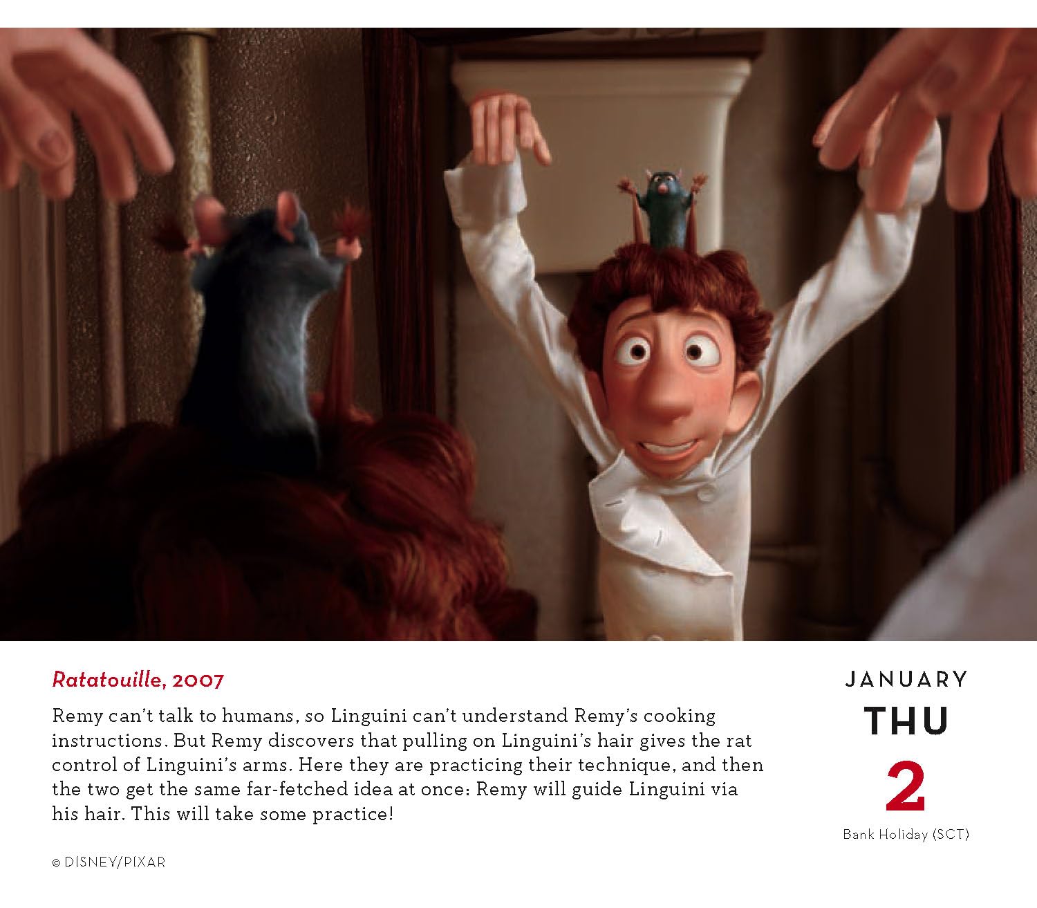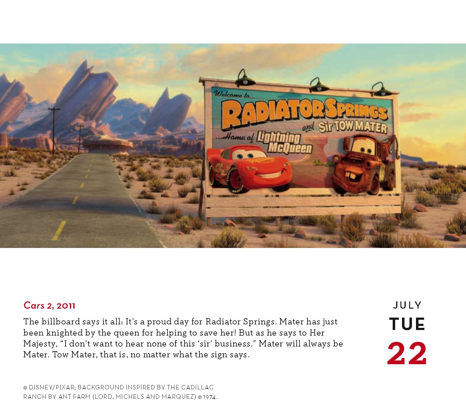 This stunning, full-color, day-to-day calendar celebrates an entire year of Disney's and Pixar's magical films and shorts!