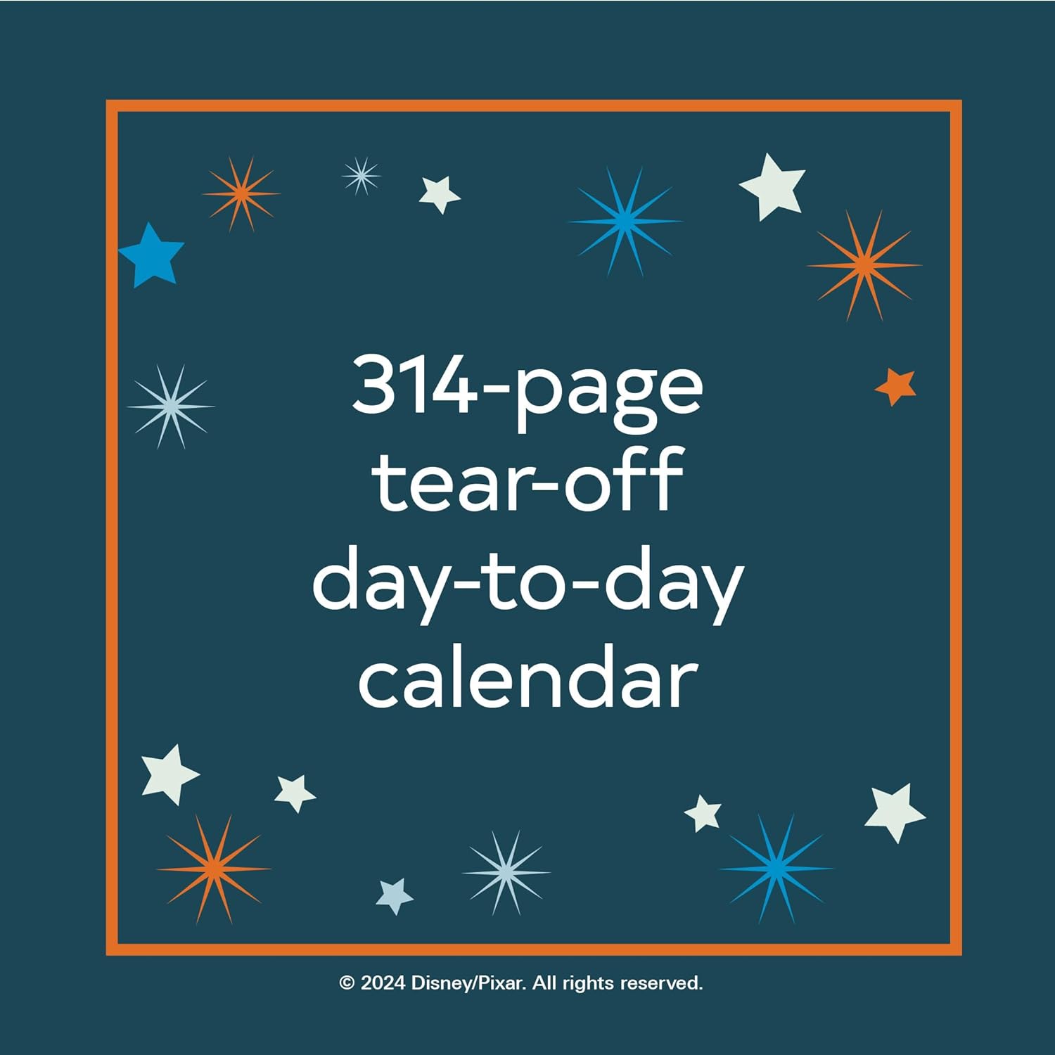 From Snow White and the Seven Dwarfs to Wish, this charming desk calendar features a colorful image each day from one of the iconic feature films or shorts from Disney and Pixar. Each image is accompanied by insider information, trivia, plot notes, or memorable quotes from the animated film. This tear-off calendar offers daily inspiration and beautiful imagery in a delightful Disney package.