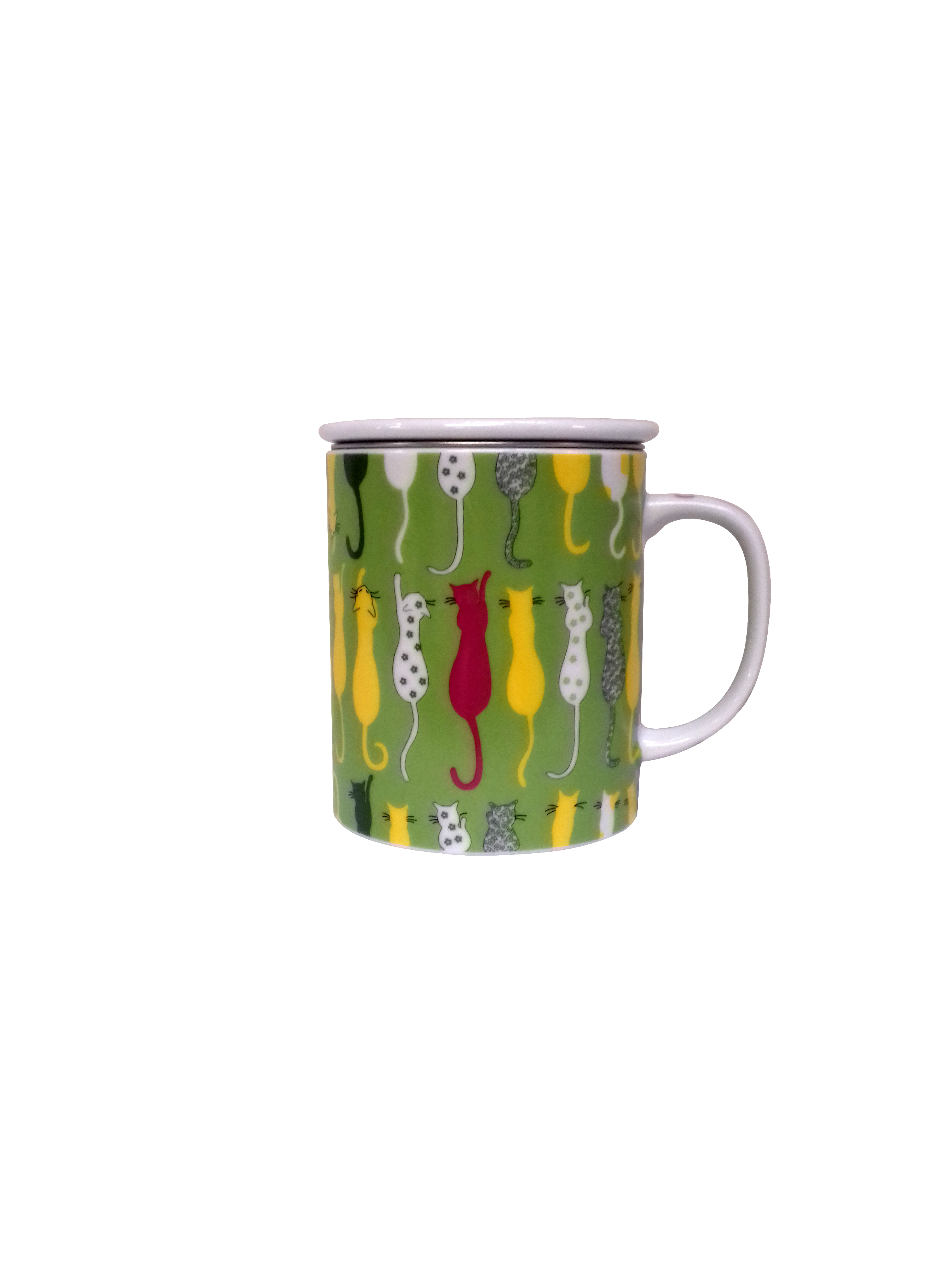 Cană elegantă din porțelan cu infuzor, cu un design unic si intens colorata, decorată cu imagini inspirate din arta tradițională japoneză.