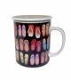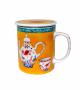 Cană elegantă din porțelan cu infuzor, decorată cu imagini inspirate din arta tradițională japoneză.
