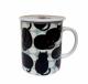 Cană elegantă din porțelan cu infuzor, decorată cu imagini inspirate din arta tradițională japoneză.