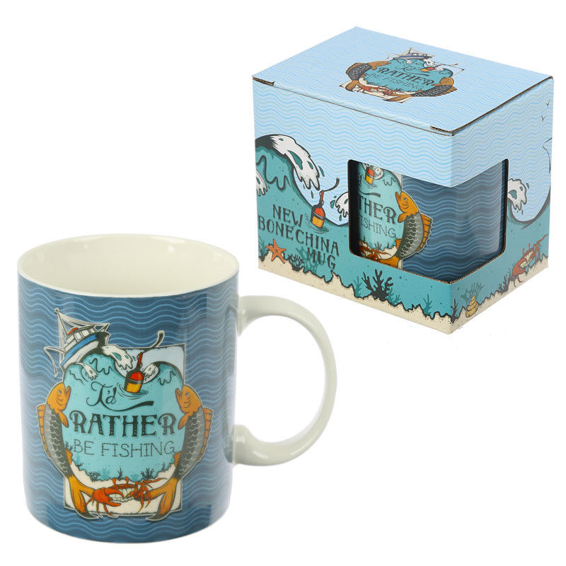 Cana din portelan cu mesajul : ""I'd Rather Be Fishing".
