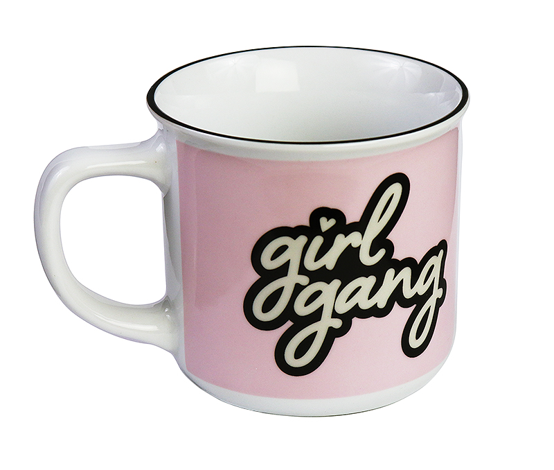 Cana din ceramica, inscriptionata cu mesajul "Girl Gang".