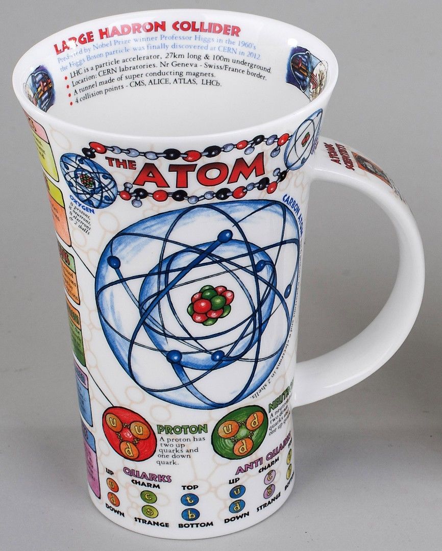 O cană plină cu informații utile și cunoștințe generale despre atomi și molecule.