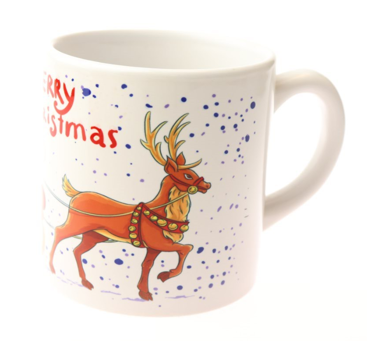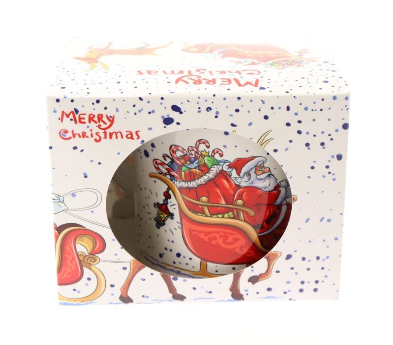Cană mică din ceramică, personalizată în policromie, ambalată în cutie din carton 190 gr/mp cu plastifiere lucioasă.