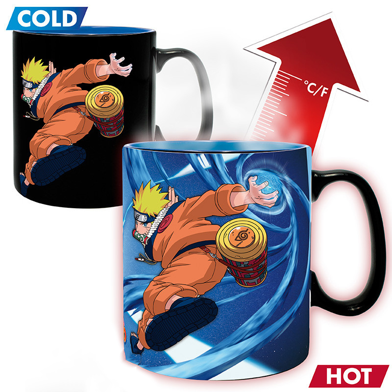 Cu această cană termo-reactivă Naruto de la ABYstyle, Naruto și Sasuke își dezlănțuie atacurile speciale atunci când torni o băutură fierbinte!