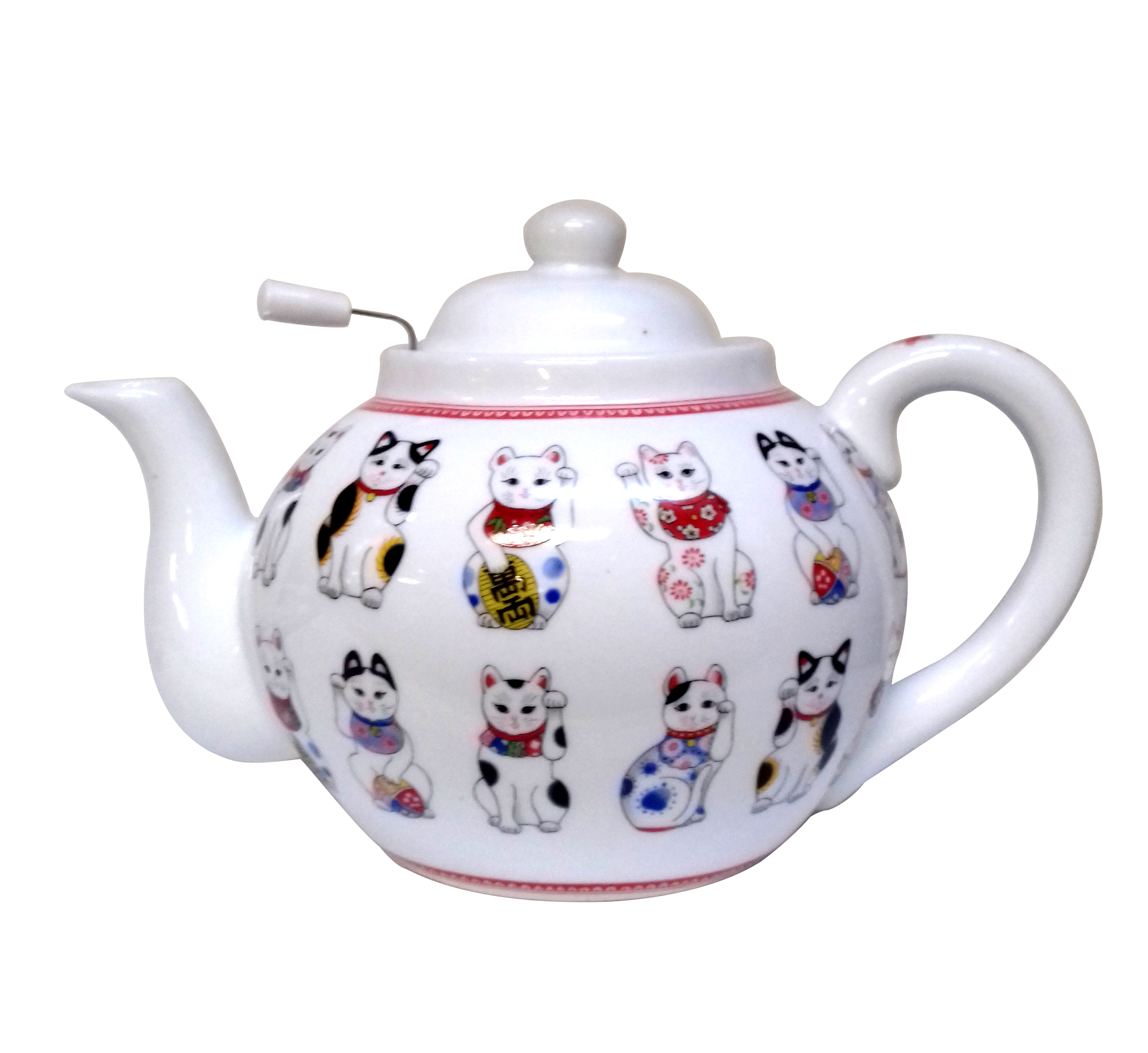 Ceainic din portelan, cu un design unic si intens colorata, decorată cu imagini inspirate din arta tradițională japoneză.