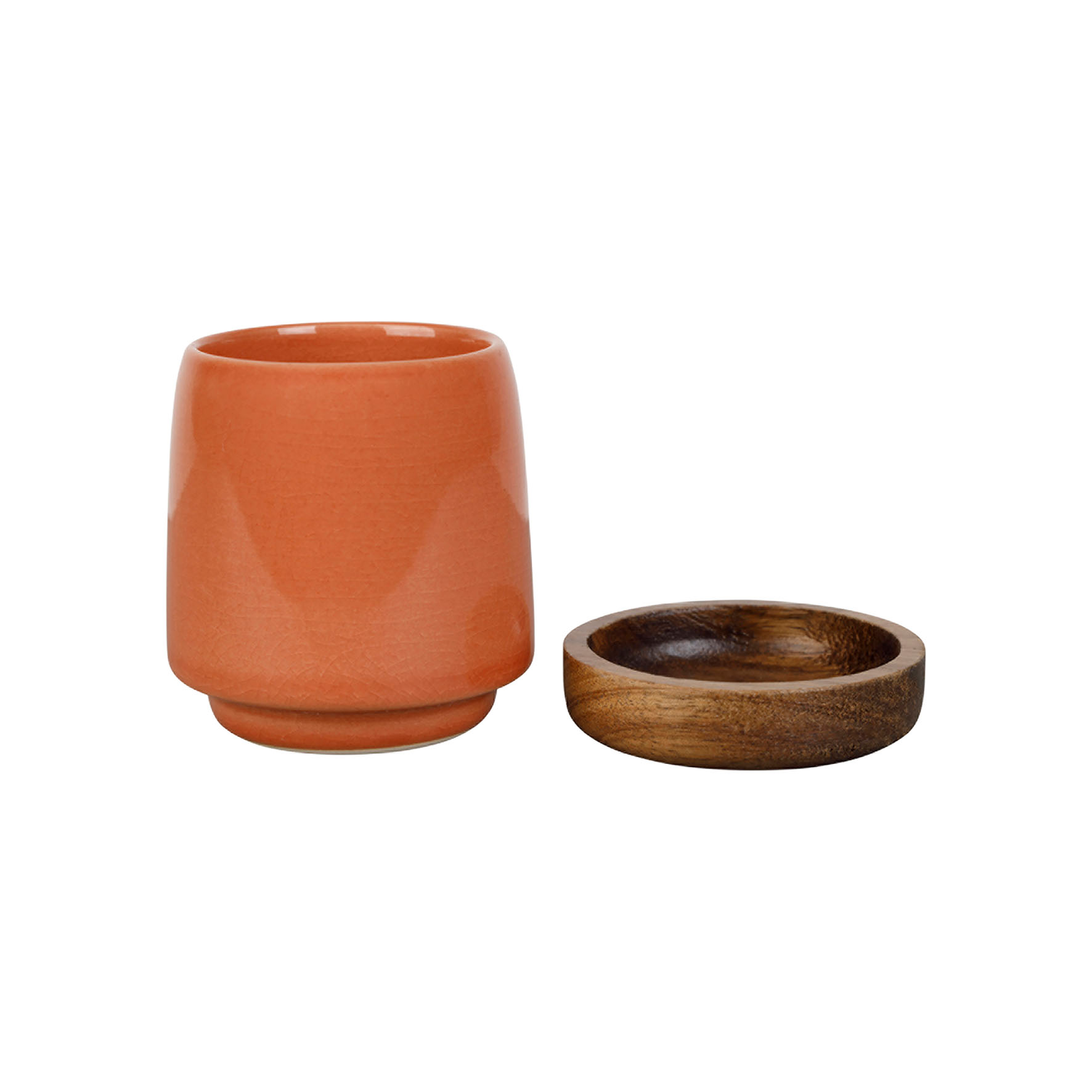 Cană din ceramică vitrificată (stoneware) cu suport din lemn de salcâm.