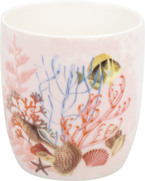 Ceașcă fără mâner decorată cu recife de corali în culori vibrante și cu forme fascinante.