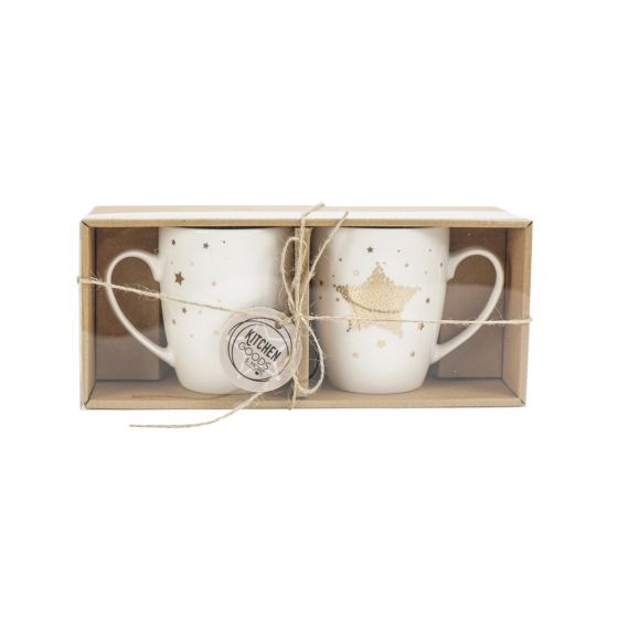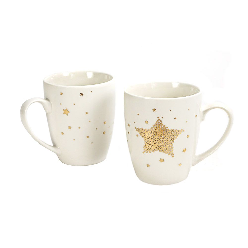 Setul contine doua cani din portelan cu stelute aurii.