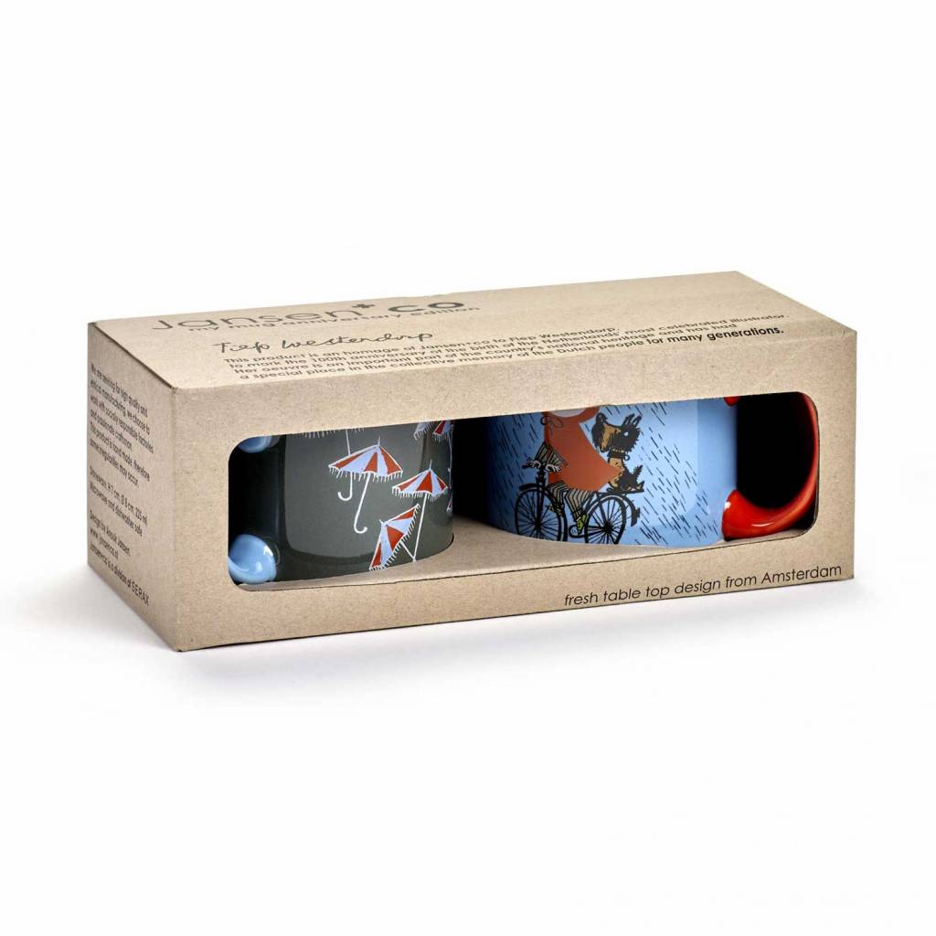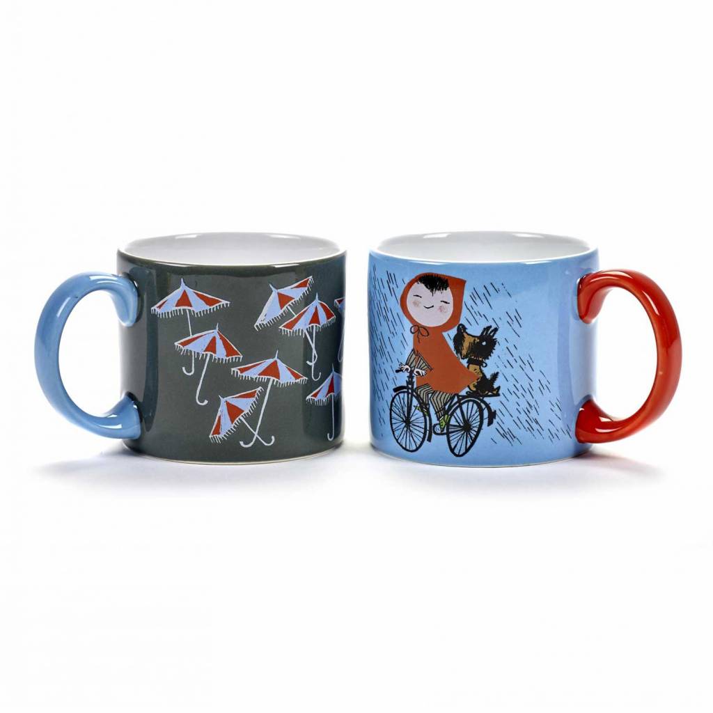 Set de două cani frumoase de porțelan cu ilustrații ale lui Fiep Westendorp în tema "Rain"