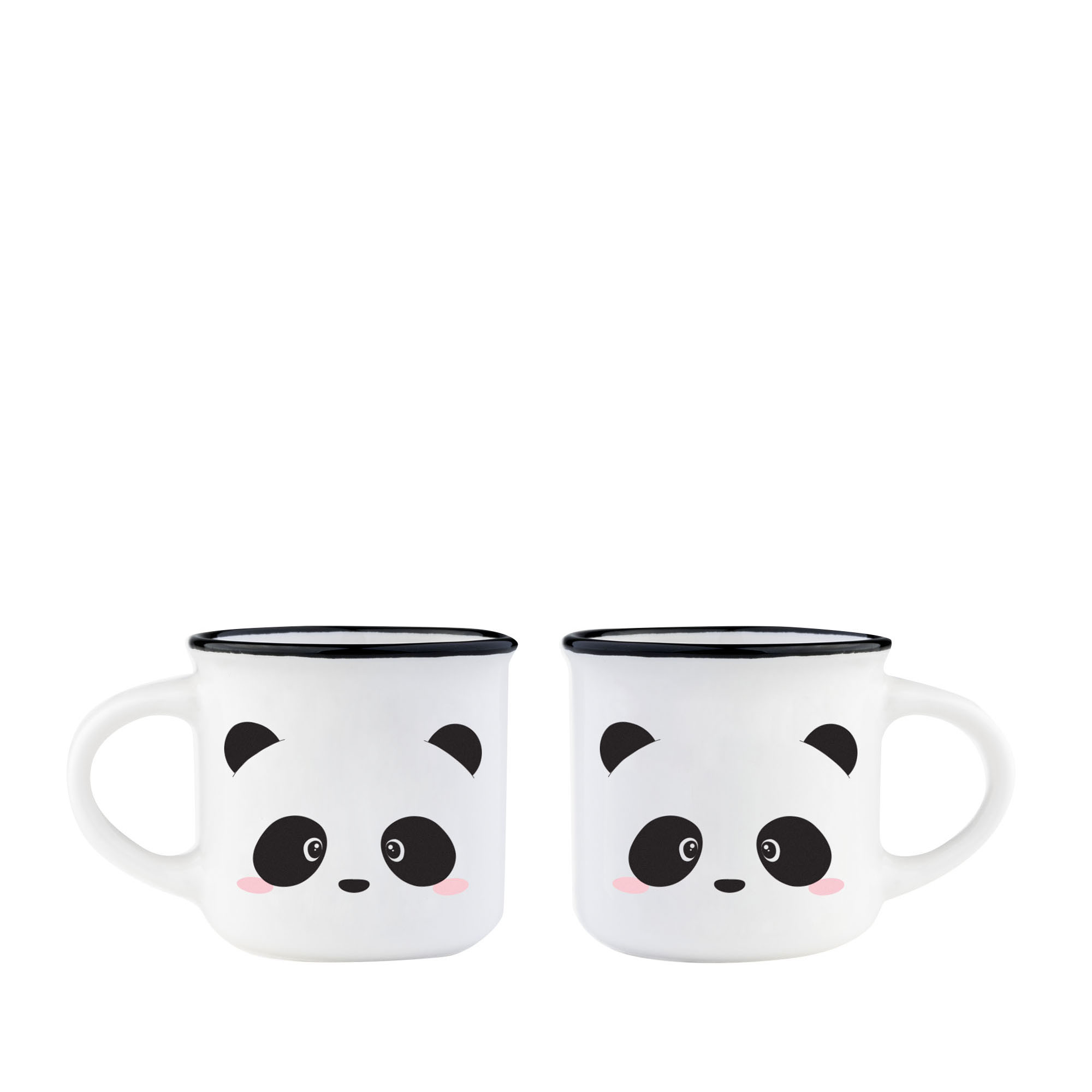 Set 2 cești din portelan, pentru espresso, cu model Panda.