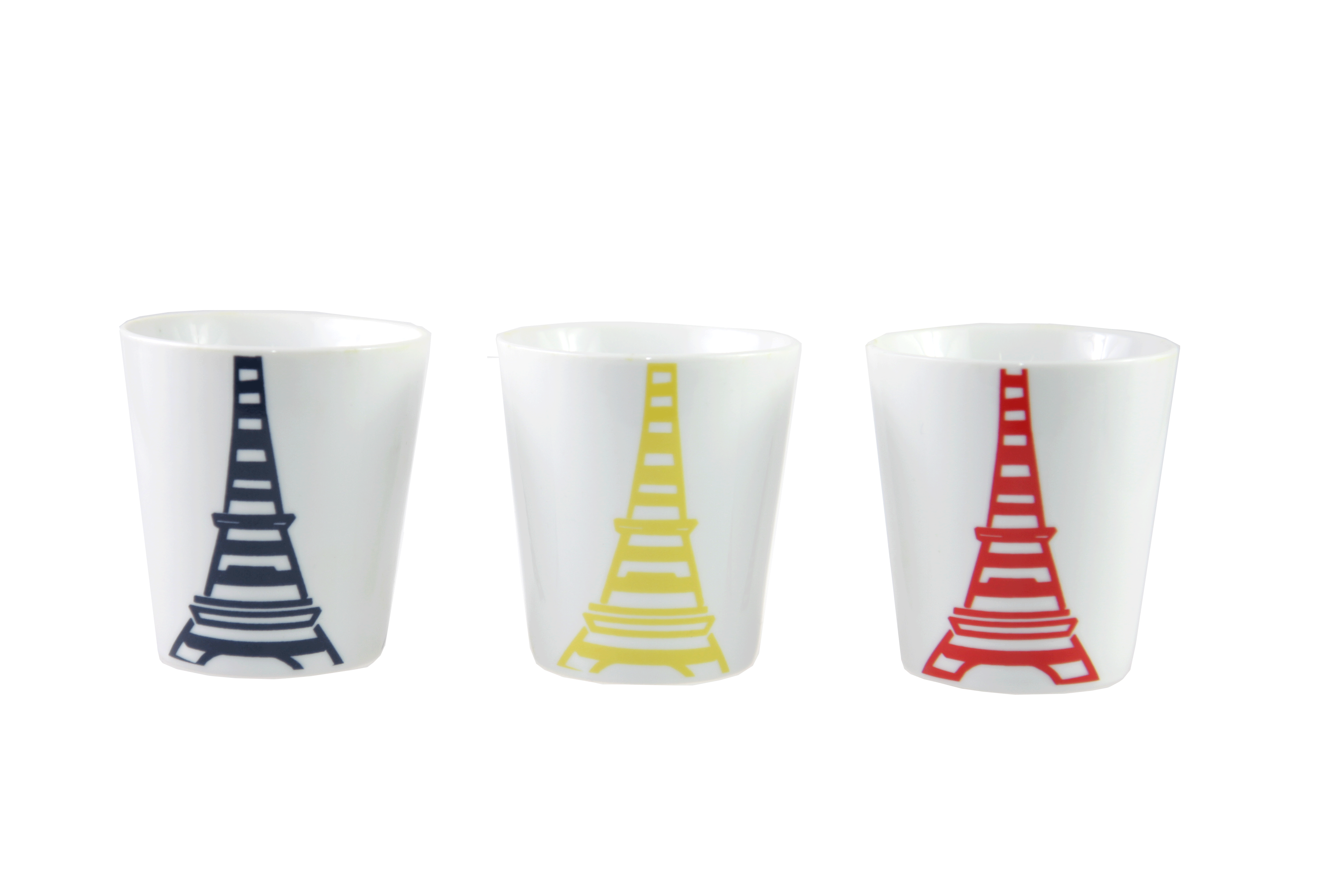 Set 3 cesti - Tour Eiffel, din portelan, cu un design unic si intens colorata, cu print-ul turnului Eiffel.
